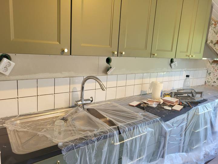 Vi kan varmt rekommendera Danis som plattsättare. Han har satt kaklet i vårt nybyggda kök i stugan. Han är noggrann och resultatet blev mycket bra. Bilden är efter kakelsättningen innan han satte fogarna.