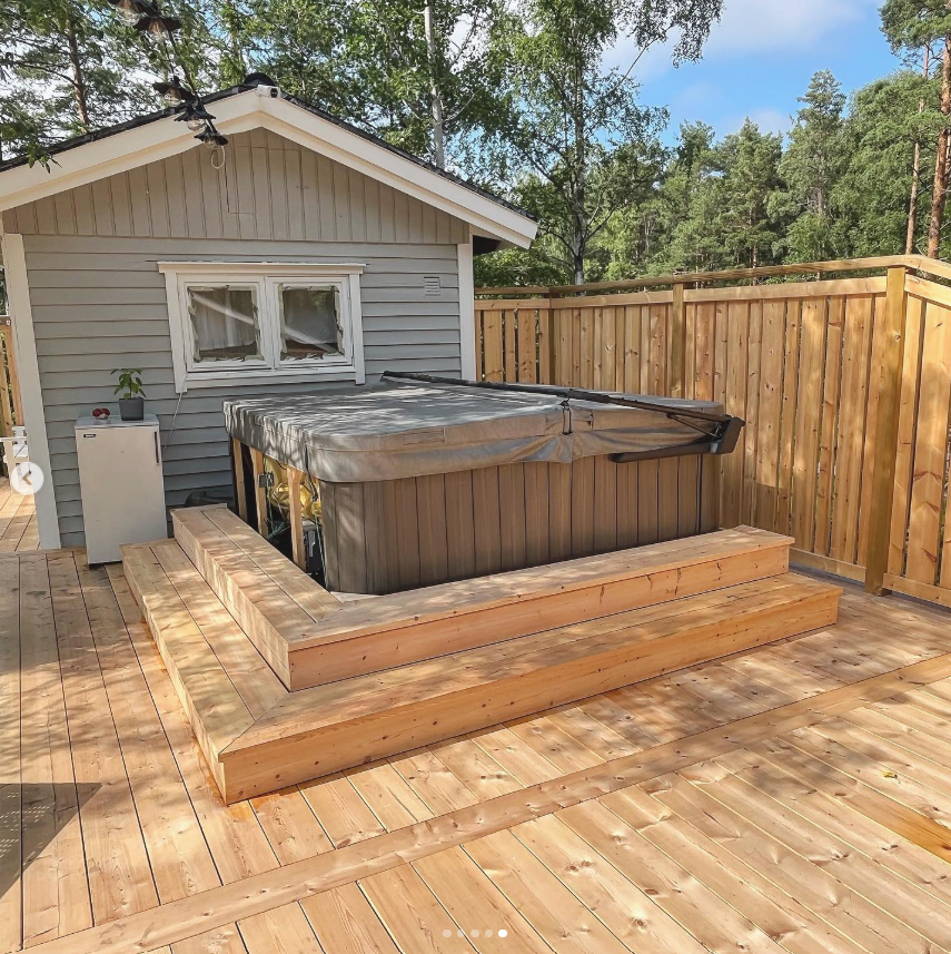 Här har vi byggt en kärnfuru altan på ca 110kvm samt monterat fönster och skjutdörr.