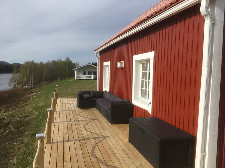 I Hemavan har vi byggt ett A-frame hus, beläget precis vid Överuman med fantastisk utsikt över fjället